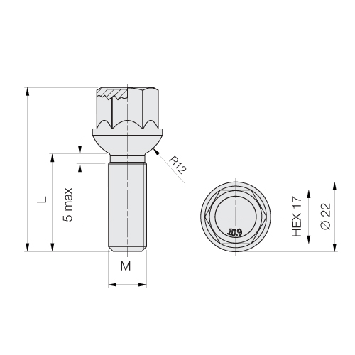 PARAFUSO DE RODA ESFÉRICO 12X1,5 L60 CH17